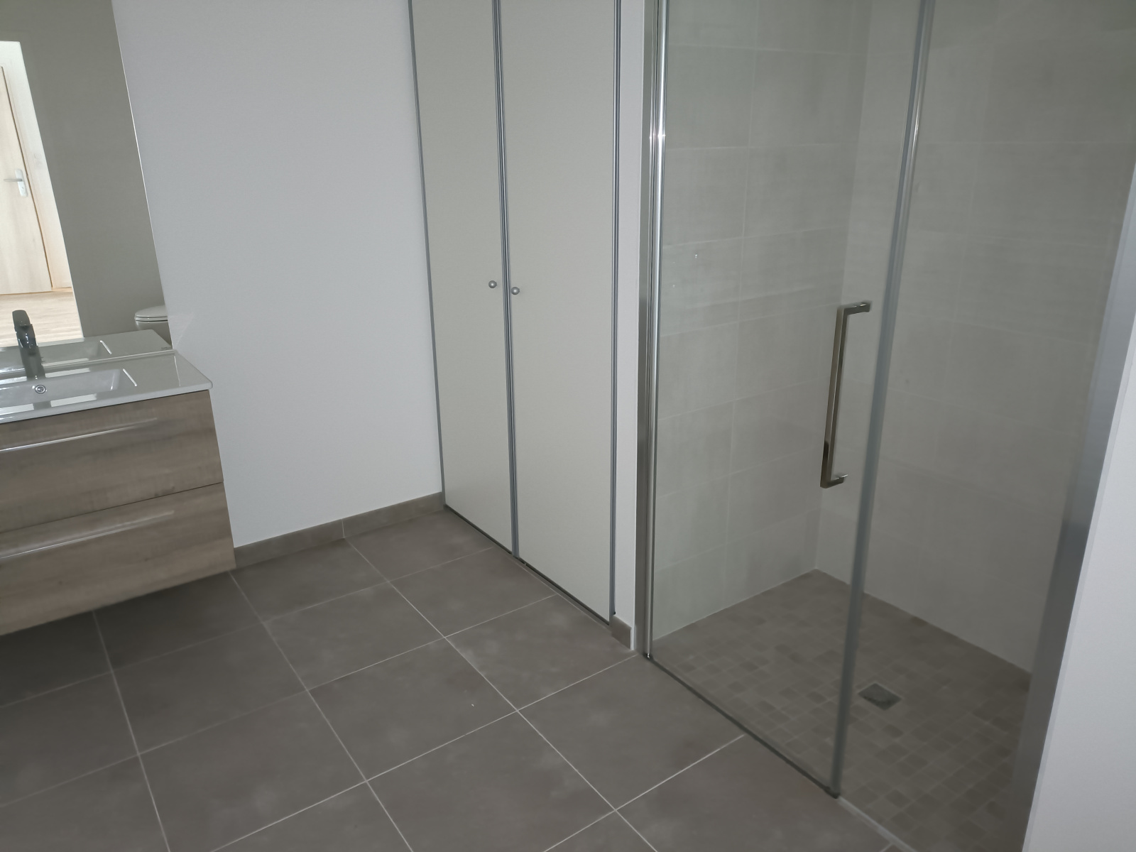 Spacieuse pièce de vie (donnant sur une terrasse), cuisine ouverte aménagée et équipée, 2 chambres, dont 1 de plus de 12m2, salle d'eau spacieuse, avec douche à l'italienne, WC séparés.