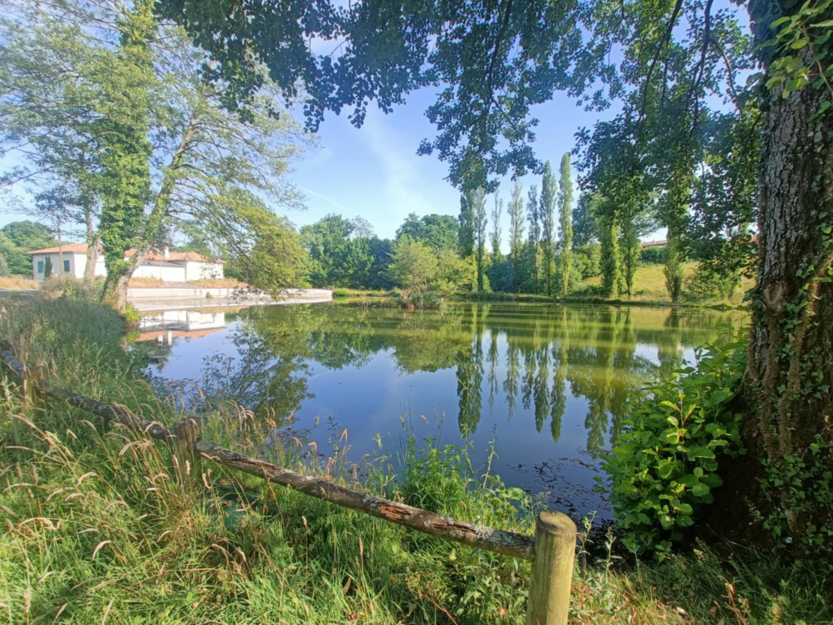 Un environement exceptionnel et magnifique pour cette maison de 200 m² habitables, 200 m² de surface annexe sur un terrain arboré avec un etang, bordé de riviere, bosquet, prairies, dependances, piscine couverte chauffée......