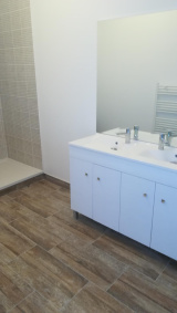 Spacieux appartement neuf, de plain-pied, comprenant 3 chambres, séjour avec cuisine ouverte, débarras, grande salle d'eau avec douche à l'italienne, WC.